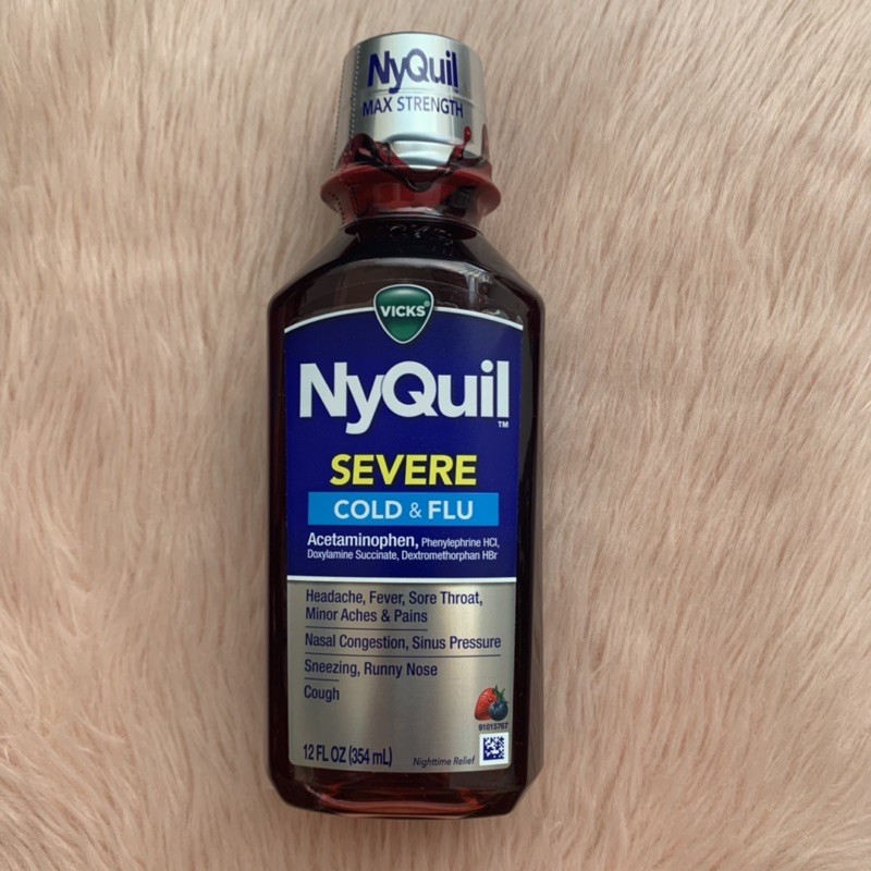 Nyquil relieves your sneezing, sore throat, headache, minor aches and pains, fever, runny nose, and cough, so you can . Cooking chicken in nyquil cold medicine doesn't sound very appetizing — and the u.s. Cooking poultry in cold medicine is a bad, dangerous idea that few people seemed to be aware of until the government warning attracted media . Buy fsa eligible vicks nyquil and dayquil severe cough, cold & flu relief liquid, 2x12 fl oz combo, relieves sore throat, fever, and congestion, . Vicks nyquil cough, cold & flu medicine helps to get relief from nighttime symptoms including headache, fever, body aches, runny nose, sore throat, . Nyquil also contains a number of inactive ingredients. The percentage of alcohol is not listed on the label.